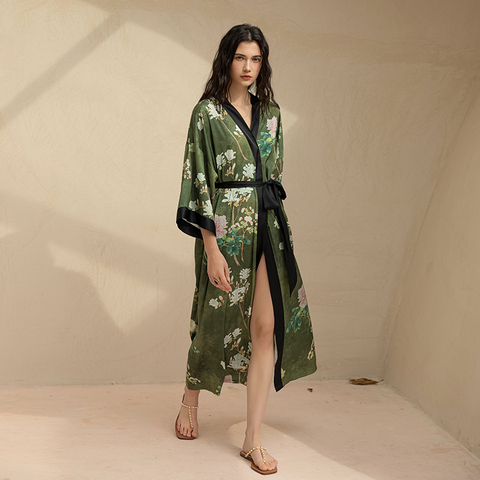 Meilleur vendeur personnalisé, motif de fleurs, pyjamas à col japonais, robes longues, satin, luxe, kimono, robe pour femmes, 2022